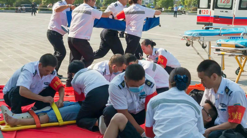 自紧急医学救援队成立以来,多次参加紧急医学救援技能竞赛,先后与公安、消防等部门联合演练,以练促学、以赛促进,以无限贴近真实场景的演练提高应对突发事件的综合素质和应急处置能力,保证事故发生时能够快速、及时、妥善处置和抢险。也因此,他们总是及时出现在了每一个需要他们的地方,交通救治、洪涝现场、传染病防控、中毒防治、火场救援……