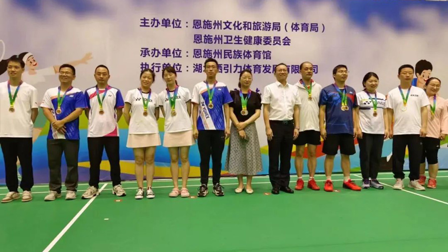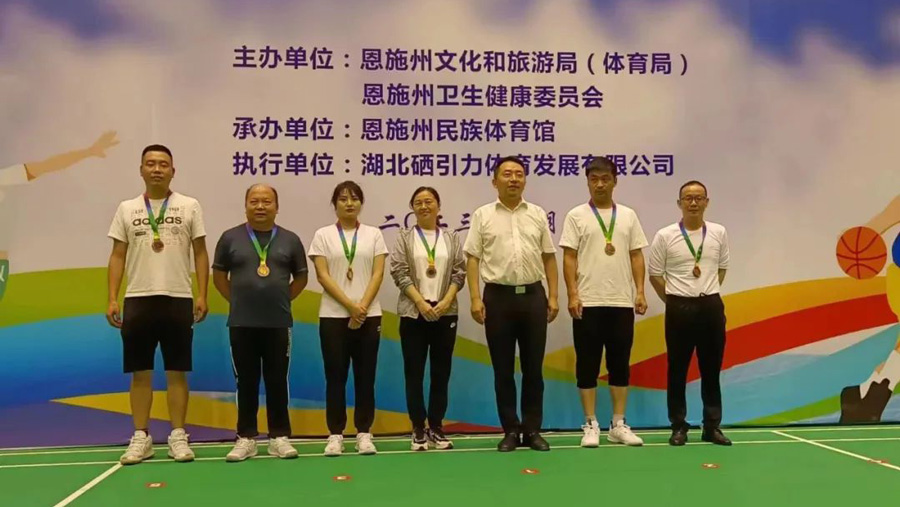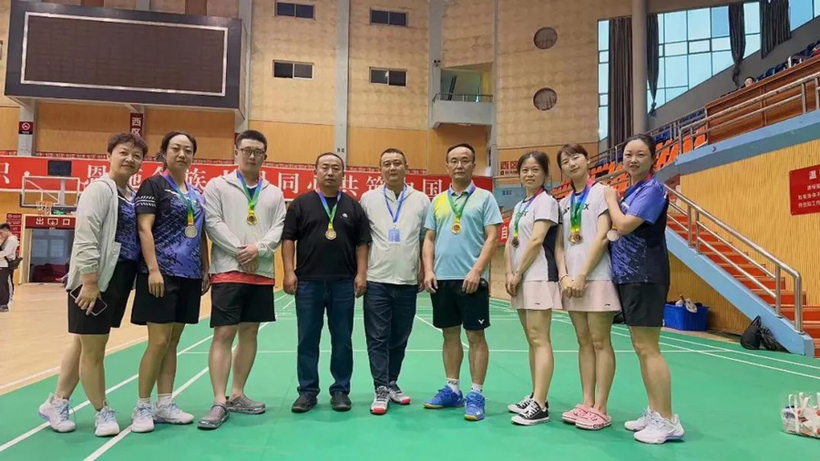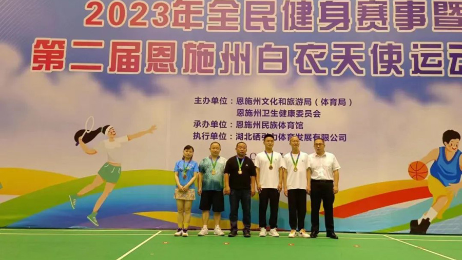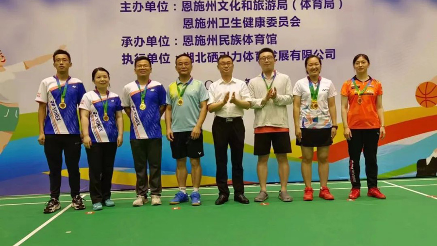 羽毛球男子双打我院神经内科主任杜敏、康复科唐浪携手荣获“冠军”;