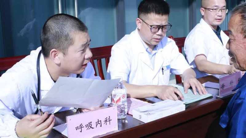 义诊现场,各科室的专家耐心地为居民看诊,面对面提供诊疗服务及健康指导。