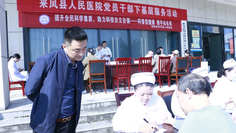 为深入学习贯彻习近平新时代中国特色社会主义思想,将党员干部下基层察民情解民忧暖民心活动走深走实,推进清廉医院建设,发挥医院党支部书记“双带头人”和党员干部参与社区建设、为群众服务的先锋模范作用,10月17日,来凤县人民医院党委书记田勇、院长廖真带队,与普/胸外科、心血管内科、呼吸内科、消化内科、肾病内科、神经泌尿外科、康复医学科、妇产科等科室团队走进官渡口社区开展义诊活动。