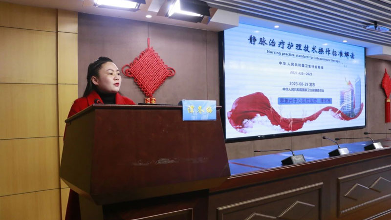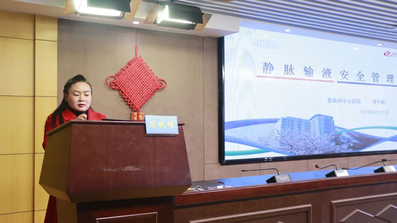 本次特邀请恩施州中心医院谭冬梅、唐珍珠、黄兴三位护理专家参加本次培训工作,我院静脉治疗组组长吴芹全程主持培训,周边县级医院、来凤县人民医院及各乡镇社区卫生院护理人员共计105人参加培训。