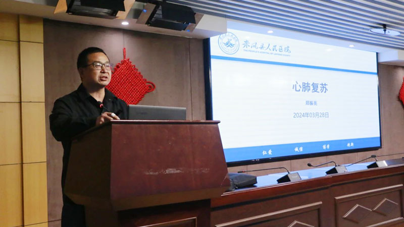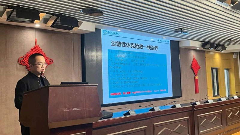 会上急诊科主任郑振亮就《心肺复苏术(CPR)及除颤仪的使用)》进行细致讲解,并现场进行心肺复苏术和除颤仪的使用的演示。麻醉科名誉主任刘福斌、医务科科长/重症医学科主任邹贻武分别就《气道管理与氧疗》《过敏性休克的救治》进行讲解。