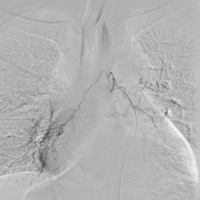 4.对于反复大咯血,药物治疗无效且不符合手术指征或拒绝手术的患者,支气管动脉栓塞术是理想的选择。