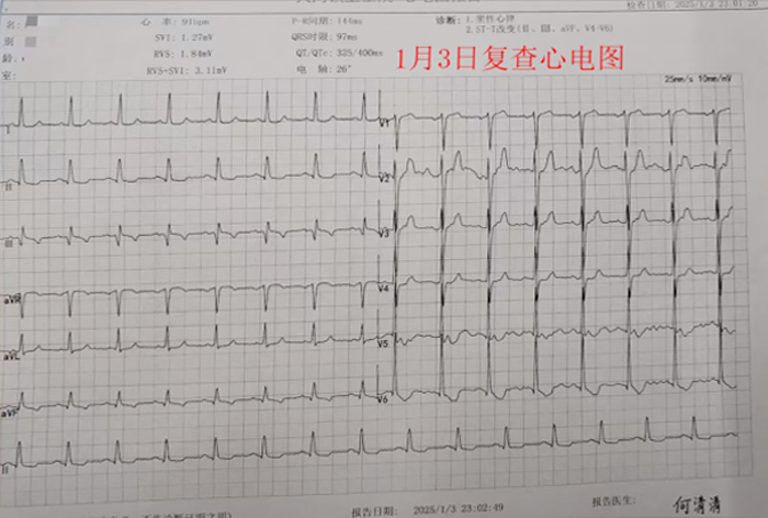 故事还需要从2025年1月3日说起,当晚23点左右我刚洗漱完毕躺上床,就看见大河胸痛救治群里有一条消息在闪烁,“突发右侧持续性胸痛”,然后就是心电图及相关病史,这是我第一次接触老陈的病史:“慢性淋巴细胞白血病、痛风性关节炎、高血压病、甲状腺功能减退、慢性肾功能不全、消化道出血、贫血”,病情确实很复杂以及棘手。而且因为胸痛在上级医院就诊三次,因为高出血风险都没有实行冠脉介入手术。群里和大河的唐珍主任了解了一下患者近期情况,“近期无黑便情况”,让我眼前一亮,感觉抓住了希望,然后建议患者转下来再评估,还是有一定希望做冠脉介入手术的,毕竟我们有老吴这个成功救治的先例,然后当晚恶补了一下慢性淋巴细胞白血病的相关知识!