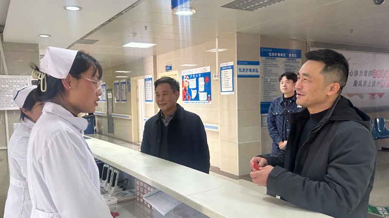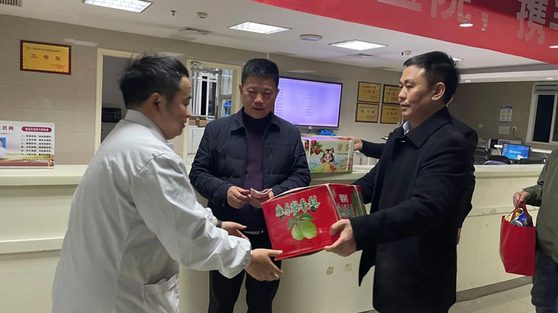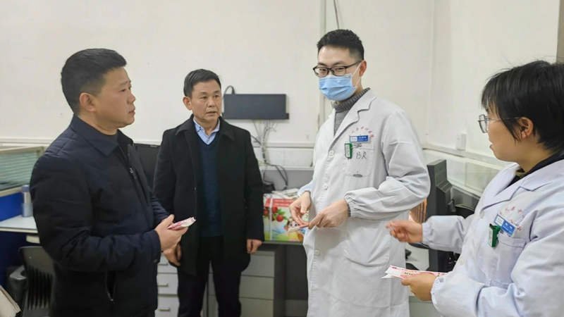1月28日晚上,院党委书记田勇与院长廖真分别带队,同其他院领导班子成员、行管科室部分负责人一行慰问除夕还坚守在岗位上的院内职工,也为住院患者送去节日的问候。