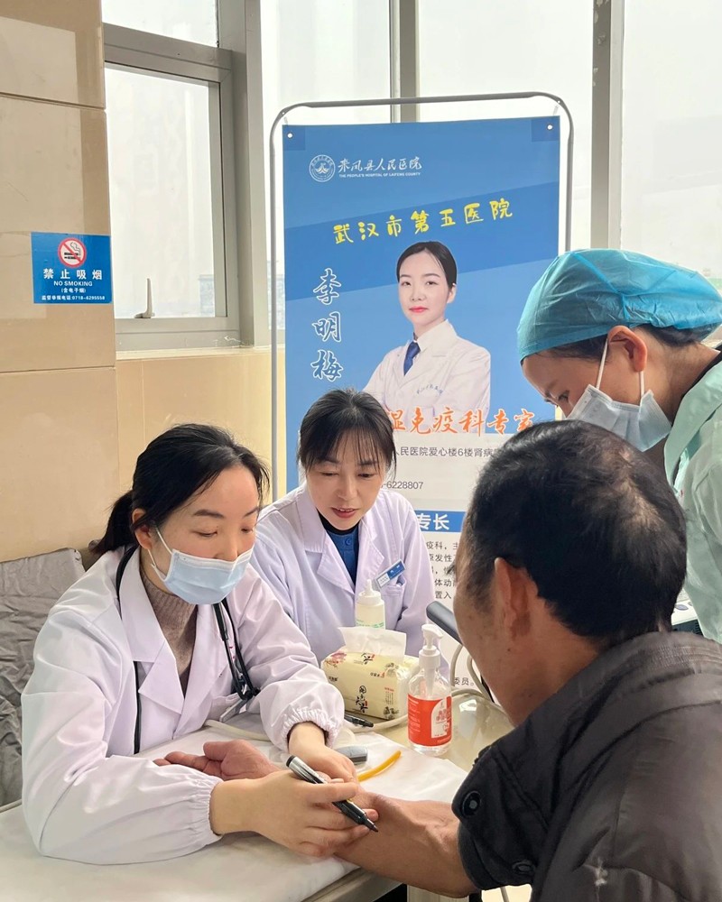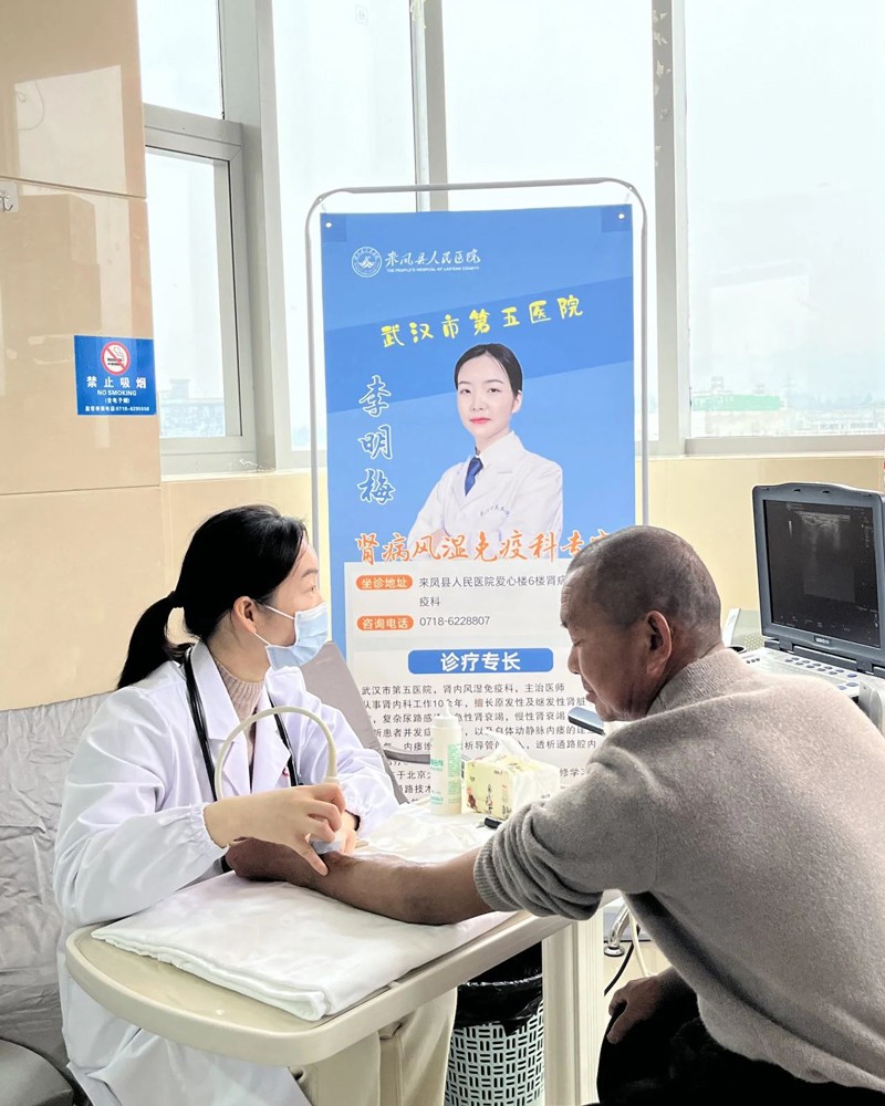 2025年3月13日,正值第二十个世界肾脏病日,来凤县人民医院肾内科/血透室特别邀请武汉市第五医院肾病风湿科专家李明梅主任为广大透析患者进行血管通路筛查,并由来凤县人民医院肾内科主任龙静为肾友及家属带来精彩实用的健康宣教,以实际行动关爱肾脏健康,共筑生命通路。