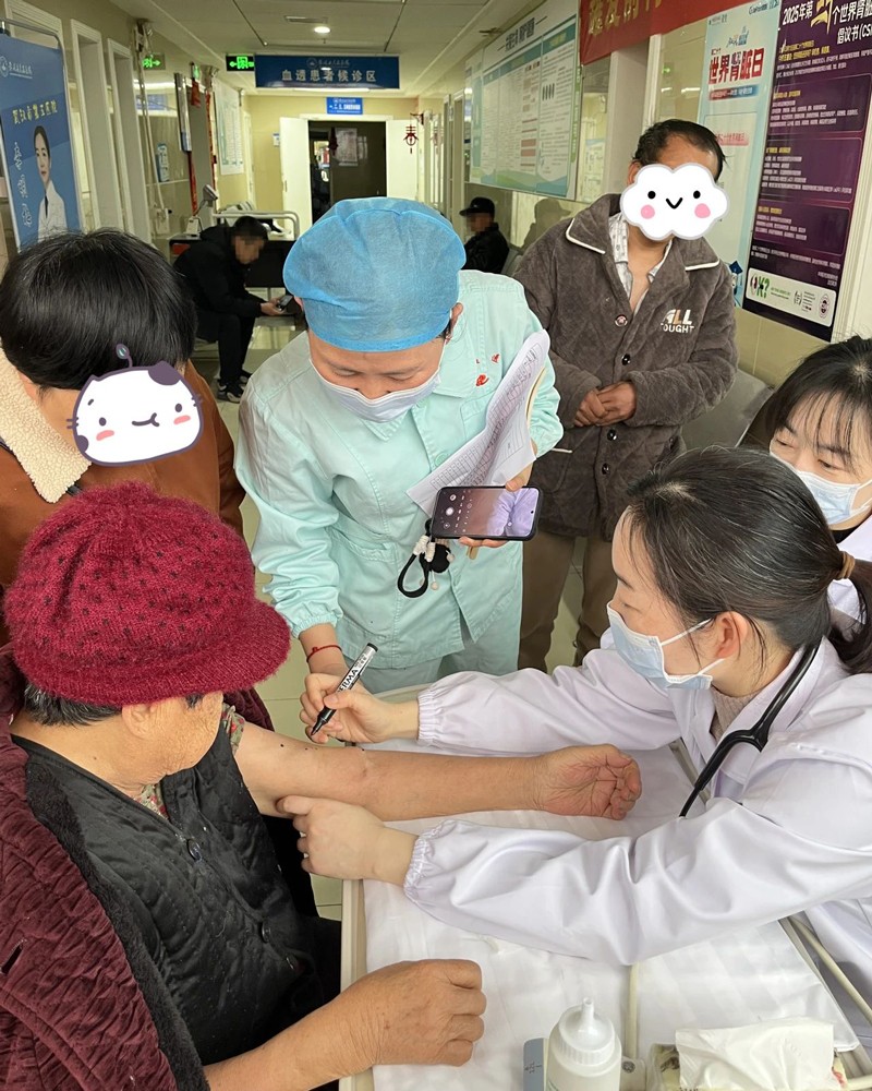 李主任凭借丰富的临床经验和精湛的技术,耐心细致地为每一位患者进行检查,评估血管通路功能,并针对不同情况提出个性化的诊疗建议。活动现场,李主任还就血管通路的日常维护、并发症预防等问题进行了详细解答,帮助患者更好地守护“生命线”。
