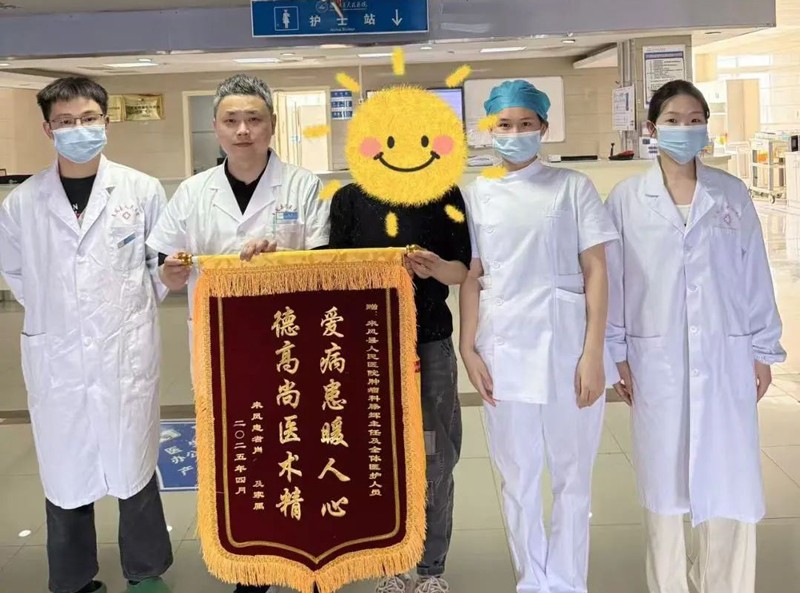 4月14日,老肖将锦旗交到我院肿瘤科医护手中时说到:“锦旗该送给所有托起生命希望的医者。”