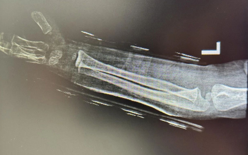 患者小徐今年16岁,因在学校不慎撞伤导致右手肿痛难忍来院就诊,穆中杰教授与科室医生认真研判病情,考虑患者为掌骨骨折可能,经过检查显示右手第5掌骨颈骨折,又称“拳击手骨折”,是临床上比较常见的手部骨折。