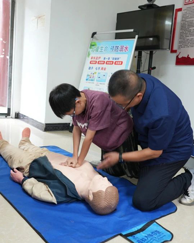 县人民医院急诊科主任郑振亮随后进行了关键性的溺水自救互救技能演示与讲解。他通过现场模拟,传授了科学、有效的施救方法,强调了在保障自身安全前提下进行救援的原则,切实提升了家长和儿童面对突发情况的应急处理能力。