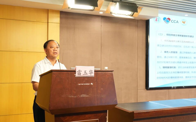 来凤县卫生健康局党组成员、公卫总师潘里程正式宣读《来凤县胸痛中心联盟》成立文件