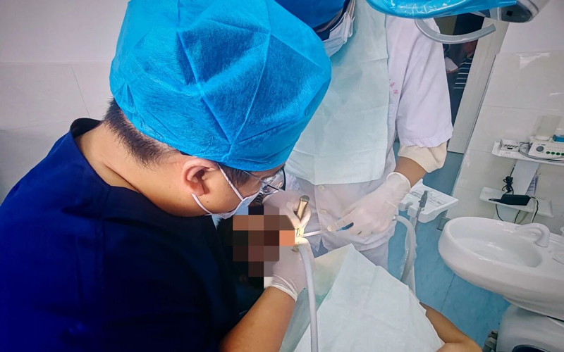 为确保手术安全,来凤县人民医院迅速启动技术协作机制。在我院坐诊的武汉大学口腔外科任建岗教授与口腔科主任张福全面评估患者CBCT影像与全身健康状况后,一致认为可实施局部麻醉手术。