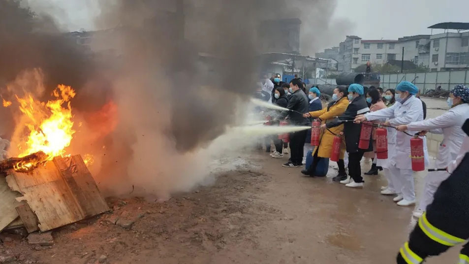 下午14点30分院党委书记田勇宣布演练正式开始,各演练科室整装待发,本次演练分为两部分。首先在病区内开展了突发火灾应急灭火及疏散逃生应急演练。然后进行了室外灭火器实操演练。在此过程中,县消防大队教官详细讲解了各类灭火器的使用方法及注意事项,并指导我院相关科室人员进行了实际灭火操作。同时对本次演练活动进行了严肃认真的点评,并强调了医院消防工作的重要性和特殊性。
