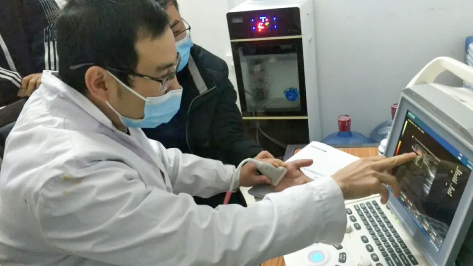 傅平主任就超声引导在腰椎穿刺中的应用进行了授课。授课形式以实践操作为主,主要分为现场查房,肌骨超声操作,超声引导骶管阻滞、腰神经根阻滞。授课紧贴乡镇卫生院的工作实际,达到了预期培训效果。