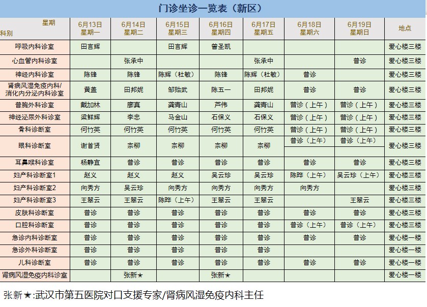 来凤县人民医院每周门诊坐诊信息(6月13日-6月19日)