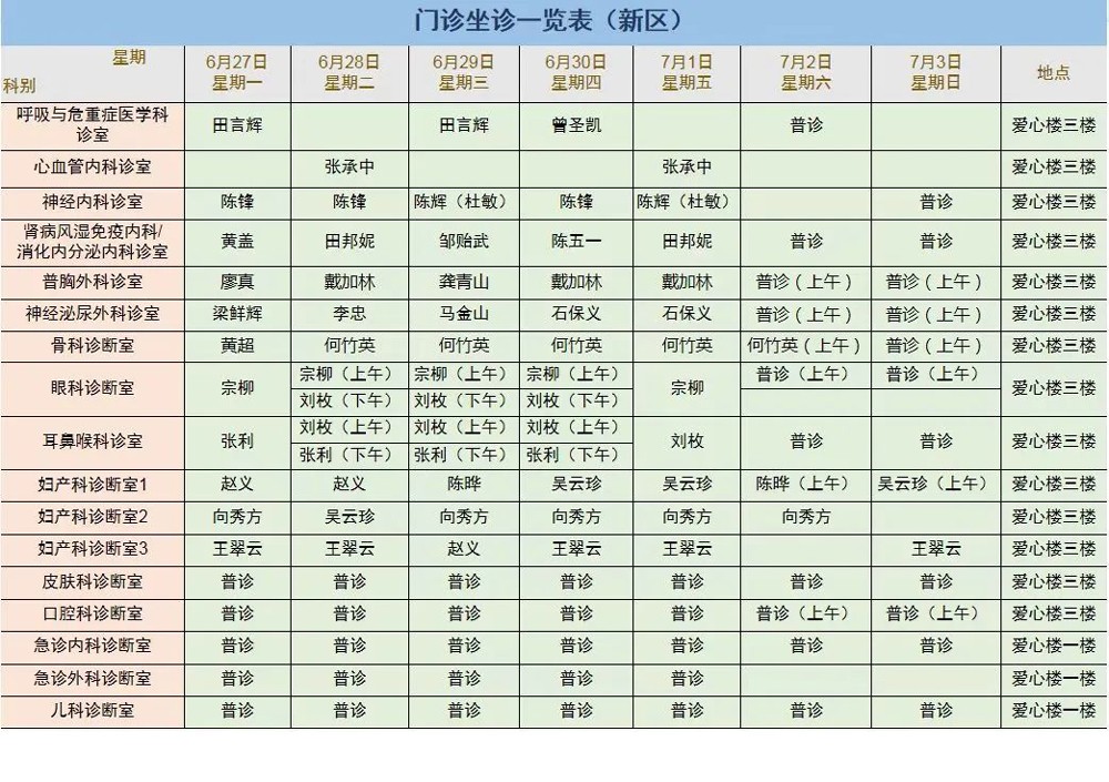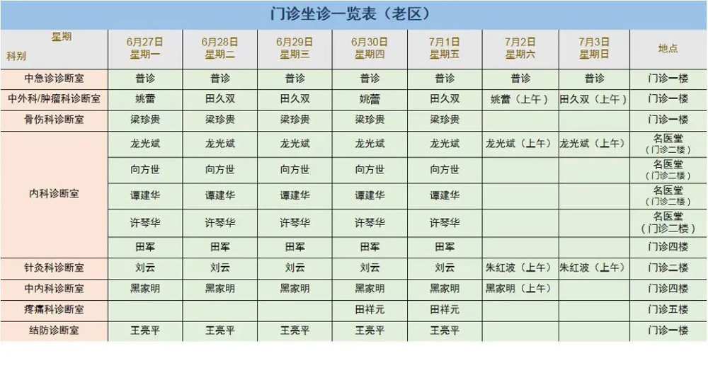 来凤县人民医院每周门诊坐诊信息(6月27日-7月3日)