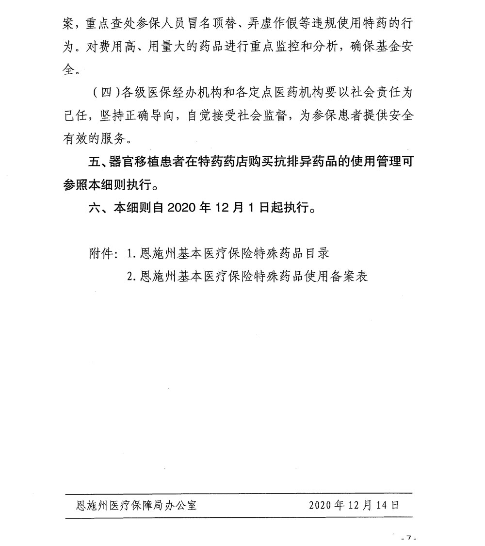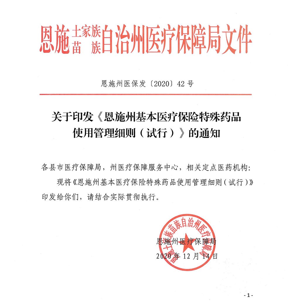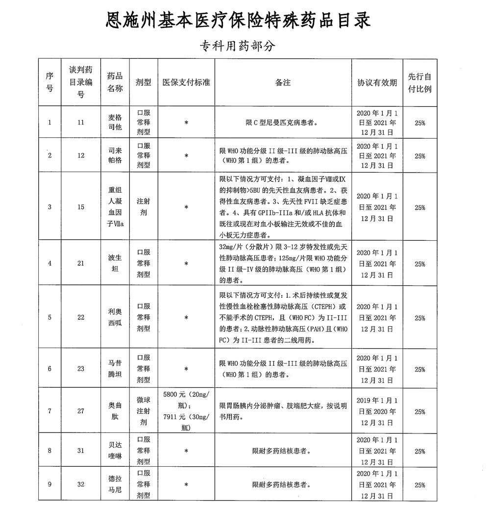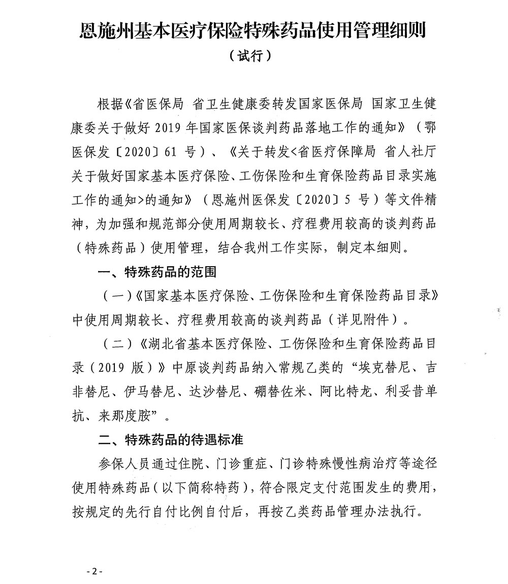 《恩施州基本医疗保险特殊药品使用管理细则(试行)》